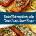 Delicious and easy baked salmon steaks with a rich garlic butter sauce, enhanced with fresh lemon juice and parsley. This simple yet flavorful dish is perfect for a healthy weeknight dinner.