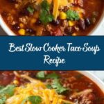 This Best Slow Cooker Taco Soup is a hearty and flavorful Tex-Mex inspired dish made with ground beef, beans, corn, and tomatoes simmered to perfection in a slow cooker. Topped with cheddar cheese, sour cream, and fresh cilantro, it’s a comforting and easy meal perfect for any day.