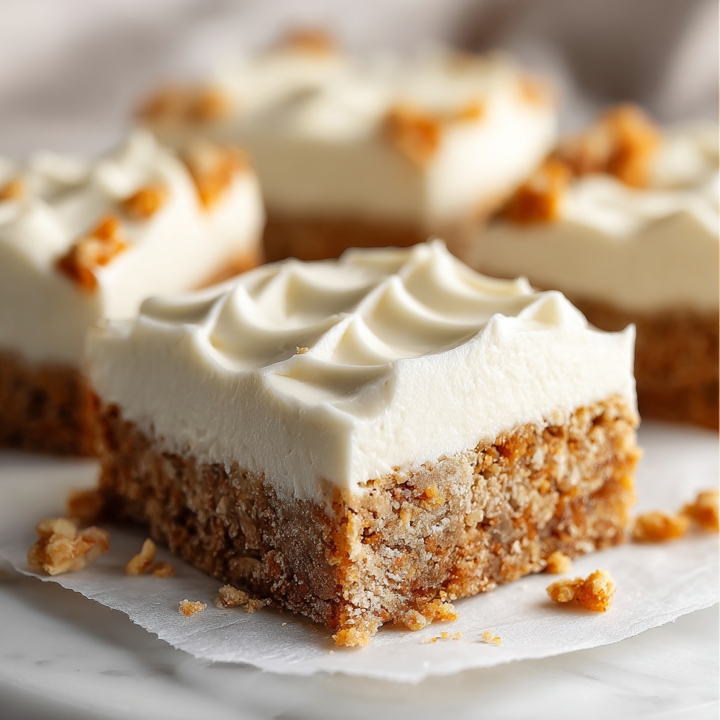 Want to impress at your next gathering? Arrange the bars on a rustic wooden board garnished with fresh mint leaves. Alternatively, serve them in individual dessert cups layered with a spoonful of whipped cream and a thin carrot ribbon for a playful twist on presentation.