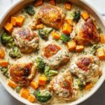 If you’re craving a comforting dish that brings together tender chicken, vibrant roasted vegetables, and a luscious sauce, then the Creamy Garlic Chicken & Vegetables Recipe is exactly what you need. This recipe is a delightful balance of flavors and textures, featuring succulent chicken thighs or breasts bathed in a rich, garlicky cream sauce, paired perfectly with roasted butternut squash and broccoli. It’s both wholesome and indulgent, easy enough for weeknight dinners yet impressive enough to serve guests. Every bite is a celebration of cozy, satisfying home cooking that warms the soul and brightens your plate.