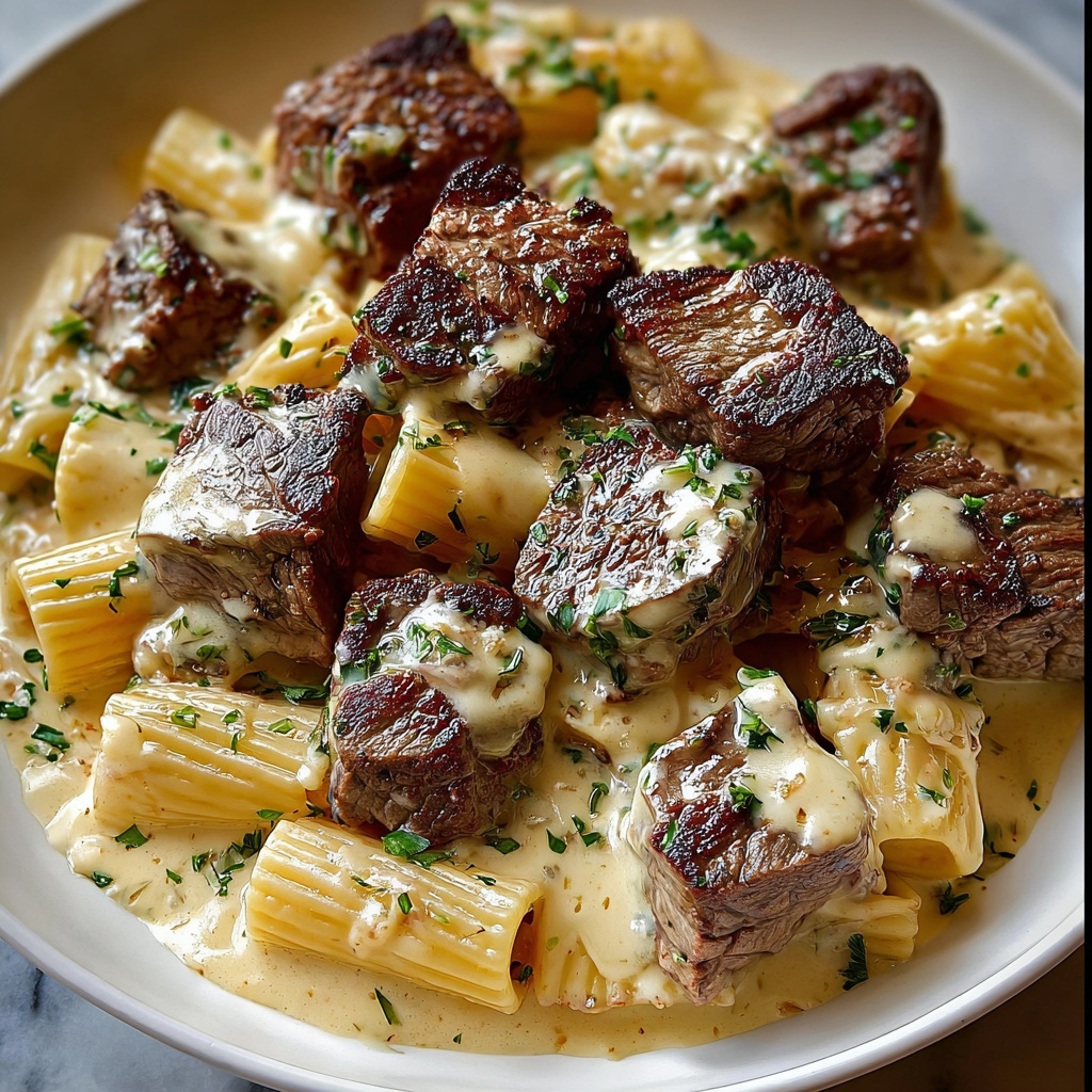 For a fancy dinner vibe, serve the creamy steak pasta in individual shallow bowls and add a sprig of parsley on top. Alternatively, you can plate it family-style in a large bowl to encourage sharing and conversation, making the meal feel both intimate and festive.