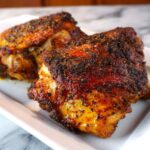 - Apply the rub: Rub the seasoning mixture evenly over all sides of the chicken thighs, coating them well to maximize flavor.