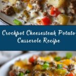 A comforting and hearty Crockpot Cheesesteak Potato Casserole that combines savory ground beef, sautéed bell peppers and onions, tender diced potatoes, and a creamy blend of cheddar cheese soup and provolone cheese. Perfect for an easy, slow-cooked meal that brings all the classic cheesesteak flavors into a satisfying casserole.