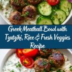 This Greek Meatball Bowl with Tzatziki, Rice & Fresh Veggies is a vibrant and flavorful meal combining juicy lamb or beef meatballs, creamy homemade tzatziki sauce, fragrant basmati rice, and fresh Mediterranean vegetables. It’s perfect for a wholesome and satisfying weeknight dinner with authentic Greek flavors.