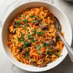 Let the Ground Beef Orzo with Tomato Cream Sauce Recipe cool completely before transferring to airtight containers. It keeps well in the fridge for up to 3 days, making it easy to enjoy as a next-day lunch or dinner.