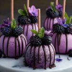 These Magical Forbidden Forest Blackberry Cheesecake Pops are a delightful no-bake treat combining creamy cheesecake, a fresh blackberry swirl, and a rich dark chocolate coating. Perfectly bite-sized and decorated with optional edible glitter and candy eyes for a whimsical touch, these pops bring a magical twist to dessert time.