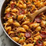 This One-Pot Pizza Pasta recipe is a delicious and easy weeknight meal that combines all the flavors of your favorite pizza in a comforting pasta dish. Made with lean ground beef, mini pepperoni, fresh vegetables, and a blend of Italian seasonings, it’s cooked all in one skillet for minimal cleanup. Topped with melted mozzarella cheese, this hearty dish is perfect for feeding a family or meal prepping for the week.