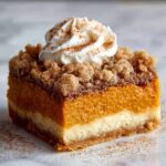 - Serve: Once cooled, dust the top with powdered sugar, slice into squares, and optionally garnish with whipped cream, caramel sauce, or toasted pecans as desired. Enjoy this autumn-inspired treat!