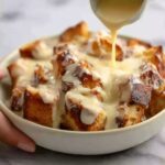 This classic bread pudding recipe yields a rich, creamy dessert made with cubed day-old French bread or brioche soaked in a fragrant cinnamon and vanilla custard, baked until golden and tender. Topped with a luscious homemade vanilla sauce, it’s the perfect comforting treat to enjoy warm.