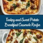 This Turkey and Sweet Potato Breakfast Casserole is a hearty, protein-packed morning dish combining ground turkey, thinly sliced sweet potatoes, fresh spinach, and seasoned eggs. Perfect for a nutritious start to the day, this casserole is baked to golden perfection, offering a flavorful and comforting breakfast option that is both filling and wholesome.