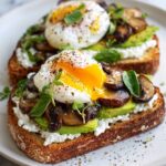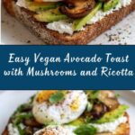 This Vegan Avocado Toast with Mushrooms and Vegan Ricotta is a delicious and nutritious plant-based breakfast or snack option. Combining creamy mashed avocado, sautéed flavorful mushrooms, and smooth vegan ricotta on crispy whole grain toast, this recipe is easy to prepare in just 20 minutes, offering a wholesome, savory, and satisfying meal perfect for vegan and vegetarian diets.